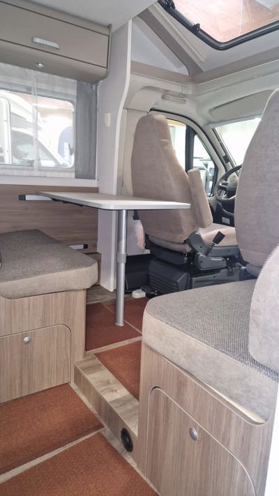 Bis zu 4 Personen gehen mit diesem Teilintegrierten Wohnmobil auf Reisen, weswegen es die ideale Wahl für den Familienurlaub ist. Navigationssystem, eine große Heckgarage sowie eine Klimaanlage im Fahrerhaus und Aufbau sind nur einige der Extras des Campers. Eine Markise spendet Schatten an sonnigen Tagen. Zusatzbatterien und ein Spannungswandler auf 220V ermöglicht Freicamping ohne Externen Stromanschluss für Fön, Kaffeemaschine oder das Laden von E-Bikes.
