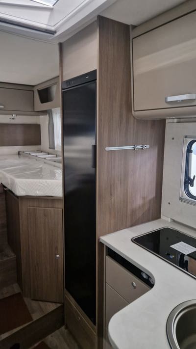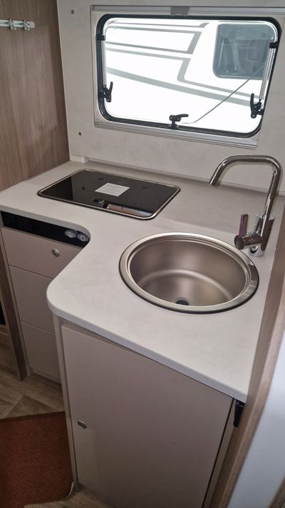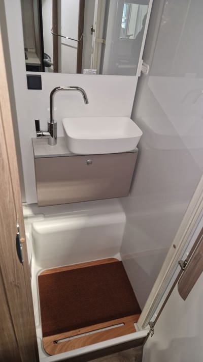 In der Küche findet sich mit Kühlschrank, Spüle und 3-Flammen-Herd alles, was es für die Versorgung unterwegs braucht. In der angrenzenden Dinette finden die Reisenden Platz, um gemeinsam zu essen und den Tag ausklingen zu lassen. Das Bad ist mit WC, Waschbecken sowie Dusche ausgestattet. Warmwasser wird über die Gasheizung erzeugt.