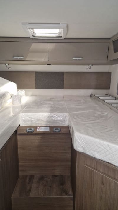 Im Heckbett können 2 Personen schlafen. Das Hubbett hält ebenfalls 2 Schlafplätze bereit.