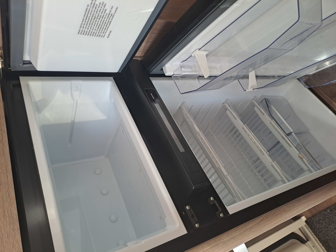 In der Küche findet sich mit Kühlschrank, Spüle und 3-Flammen-Herd alles, was es für die Versorgung unterwegs braucht. In der angrenzenden Dinette finden die Reisenden Platz, um gemeinsam zu essen und den Tag ausklingen zu lassen. Das Bad ist mit WC, Waschbecken sowie Dusche ausgestattet. Warmwasser wird über die Gasheizung erzeugt.