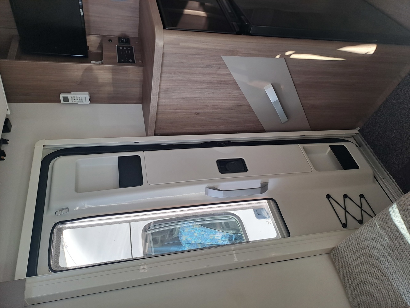 Im im Heckbett können 2 Personen schlafen. Das Hubbett hält ebenfalls 2 Schlafplätze bereit.