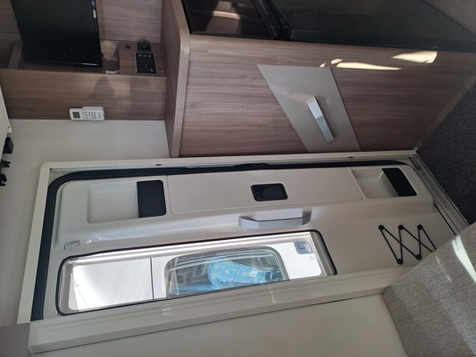 Bis zu 4 Personen gehen mit diesem Teilintegrierten Wohnmobil auf Reisen, weswegen es die ideale Wahl für den Familienurlaub ist. Navigationssystem, eine große Heckgarage sowie eine Klimaanlage im Fahrerhaus und Aufbau sind nur einige der Extras des Campers. Eine Markise spendet Schatten an sonnigen Tagen. Zusatzbatterien und ein Spannungswandler auf 220V ermöglicht Freicamping ohne Externen Stromanschluss für Fön,Kaffeemaschine oder das Laden von E-Bikes.